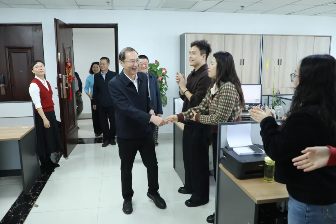 “新年好,給大家拜年了,祝大家身體健康,工作順利!”喜氣祥和的氛圍中,領(lǐng)導(dǎo)們與各子(集團(tuán))公司、各部門員工親切握手、熱情交談。曹壯對(duì)大家過去一年的辛勤付出表示衷心感謝,希望大家迅速從“放假狀態(tài)”切換到“工作模式”,繼續(xù)鼓足干勁、開拓創(chuàng)新,以馬上就辦、敢做善成的奮進(jìn)姿態(tài)迎接新的挑戰(zhàn),凝心聚力、真抓實(shí)干、攻堅(jiān)克難,確保各項(xiàng)工作有序推進(jìn)、高效落地,為全面完成各項(xiàng)目標(biāo)任務(wù)開好頭、起好步。