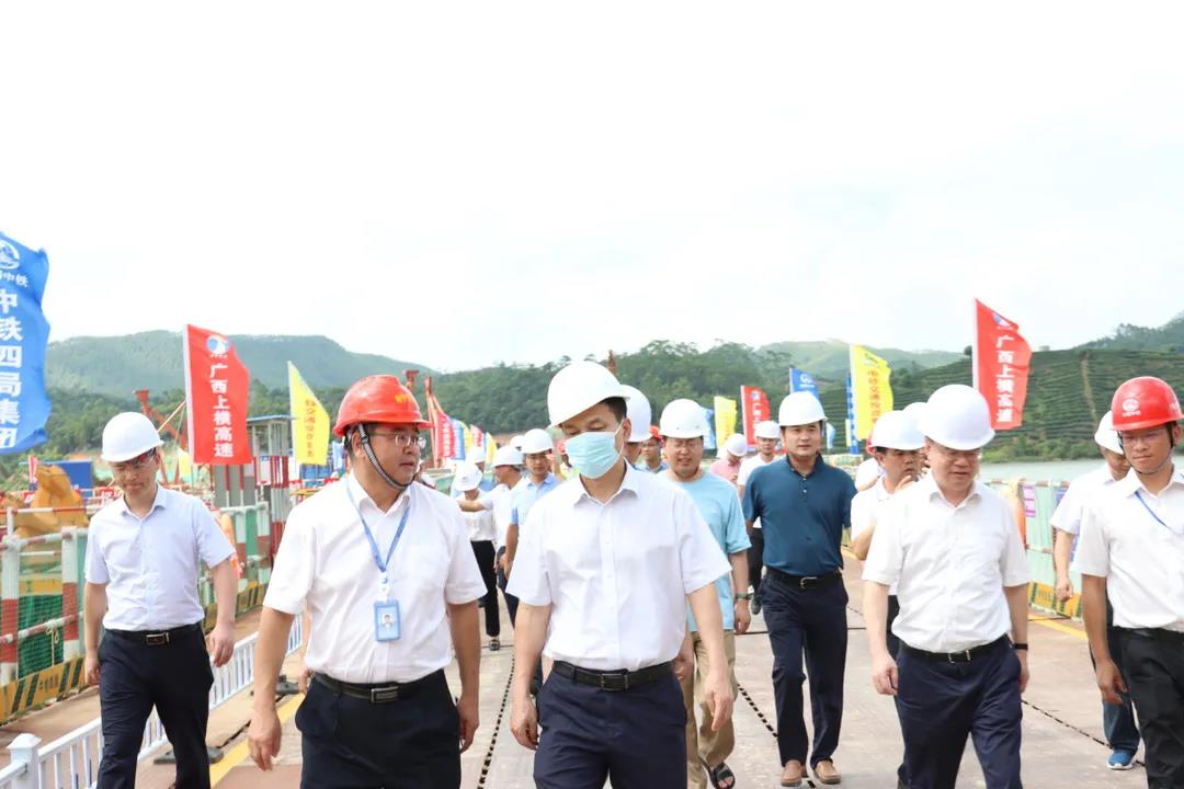 7月8日,自治區(qū)政協(xié)副主席、黨組成員嚴朝君率隊到所聯(lián)系推進的自治區(qū)重大項目——上林至橫縣高速公路調(diào)研,協(xié)調(diào)解決項目建設中存在的困難和問題。